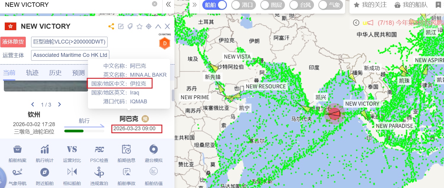 (2)图3 new victory3月12日晚8点显示目的地原是Iraq阿巴克,现已改成for order;