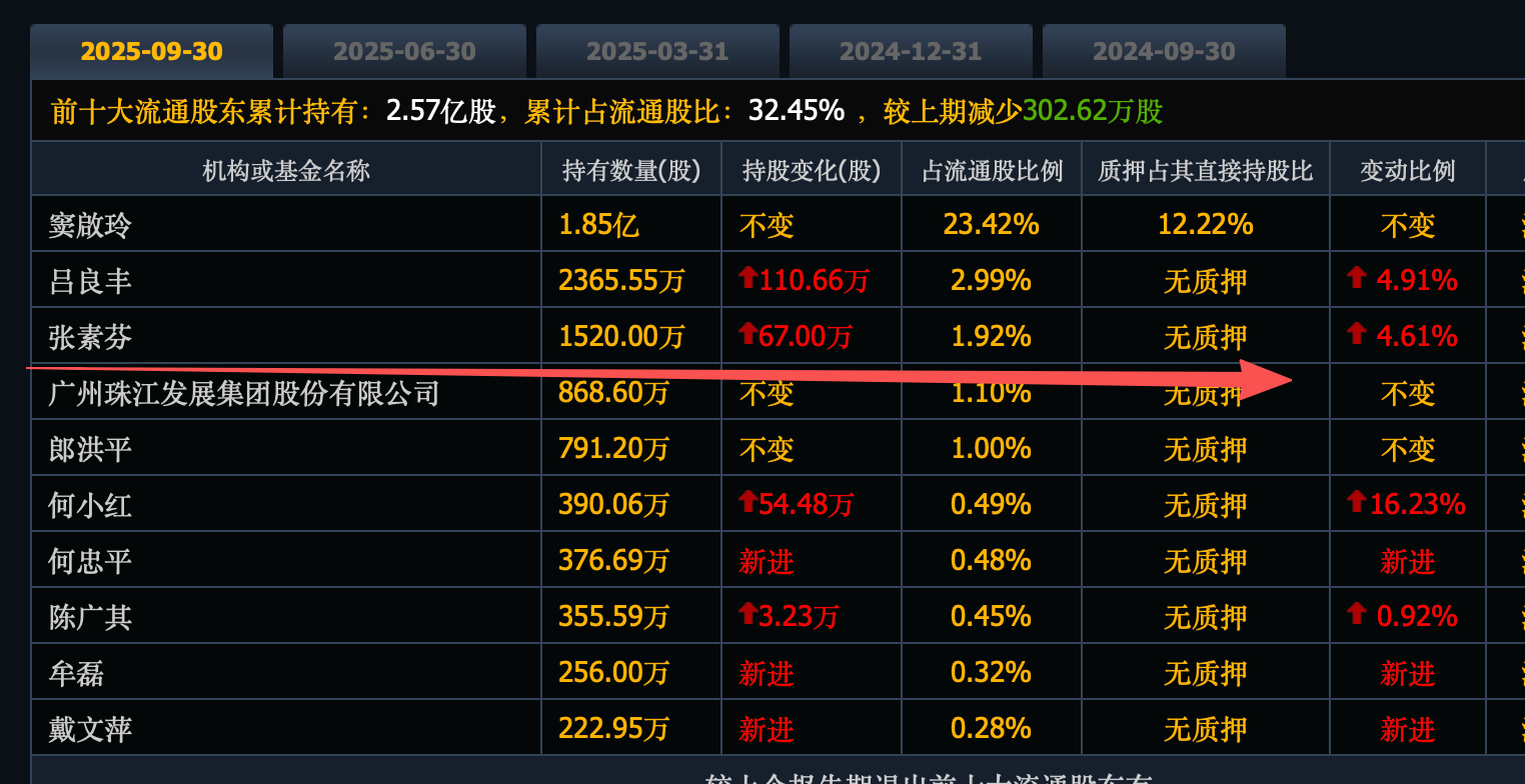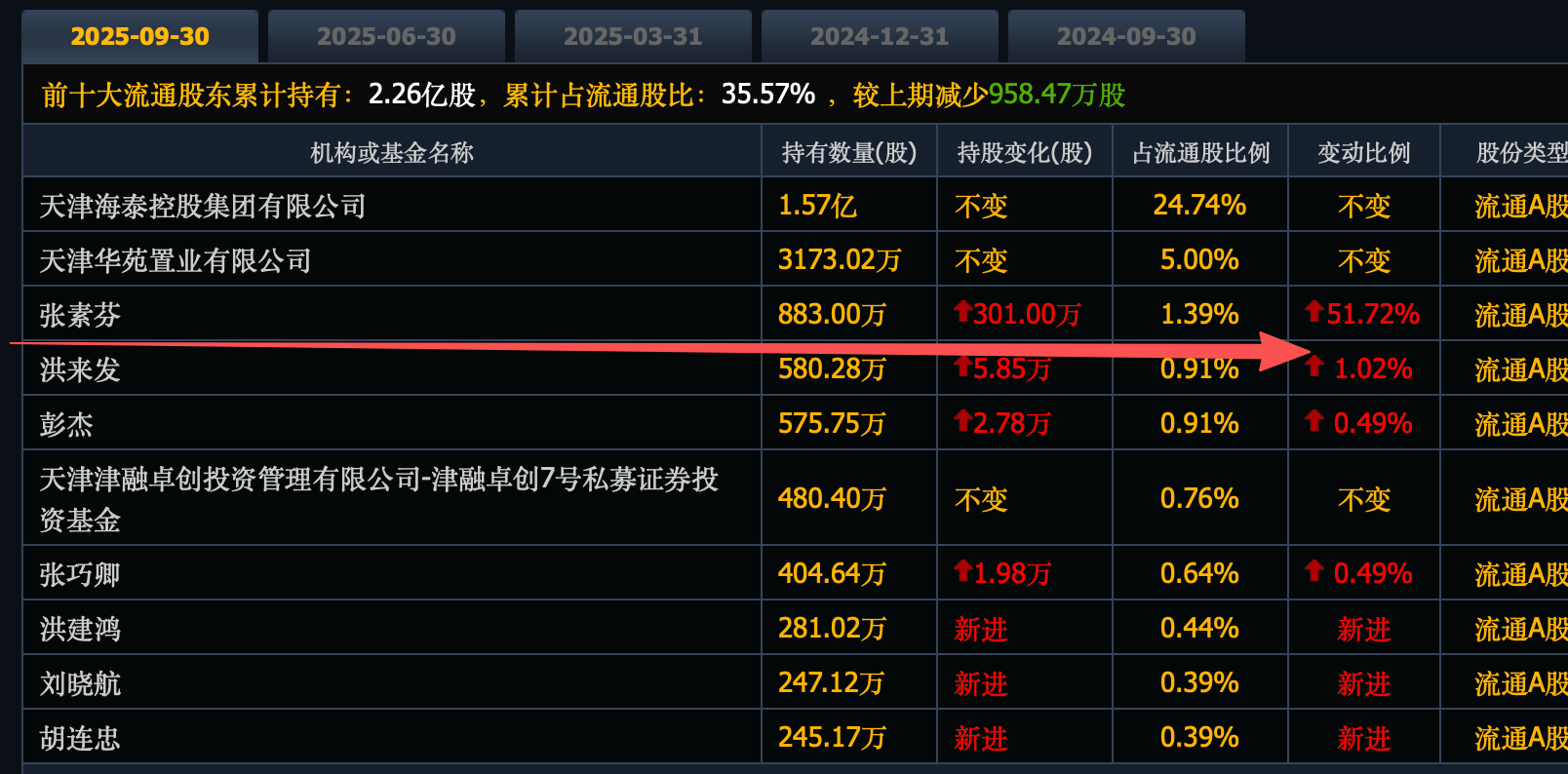 牛散张素芬一直都在新进,刚刚又加仓了67万股,现在持股量达到1520万股,成为第三大股东。