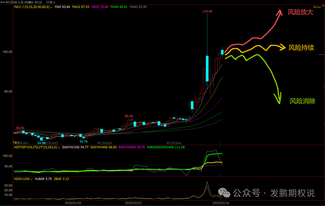 对期权交易者来说,这样的大背景下,隐含波动率已经大幅上涨的品种,尤其是原油链上的标的,做空波动率不仅要方法进一步飙涨时卖购的风险,还要做好油价快速蹦跌回70的陡转风险。执行上,不仅不能卖购,下方的卖沽亦需要保持足够的安全度,以防范类似2月初白银崩盘杀‘多’走势。
