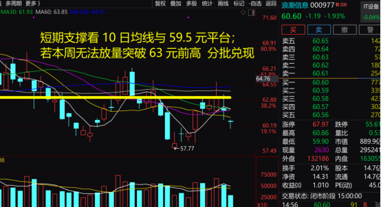 浪潮信息:基本面是全球AI服务器龙头,市占率稳居中国第一、全球前三,深度绑定英伟达、Meta、阿里、腾讯等头部客户,今日计算机 / 算力板块遭资金大幅流出,叠加内资避险情绪,AI 服务器龙头被动走弱;虽受益存储芯片、国产替代主线,但无量反弹下资金兑现意愿强。短期支撑看 10 日均线与 59.5 元平台;若本周无法放量突破 63 元前高,建议分批兑现;回踩企稳后再低吸,忌追高。