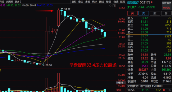 创新医疗:今日已经获利离场,盘中提醒33.4关键压力位离场 这个位置也是近一个月的压力 落袋为安择机再进。