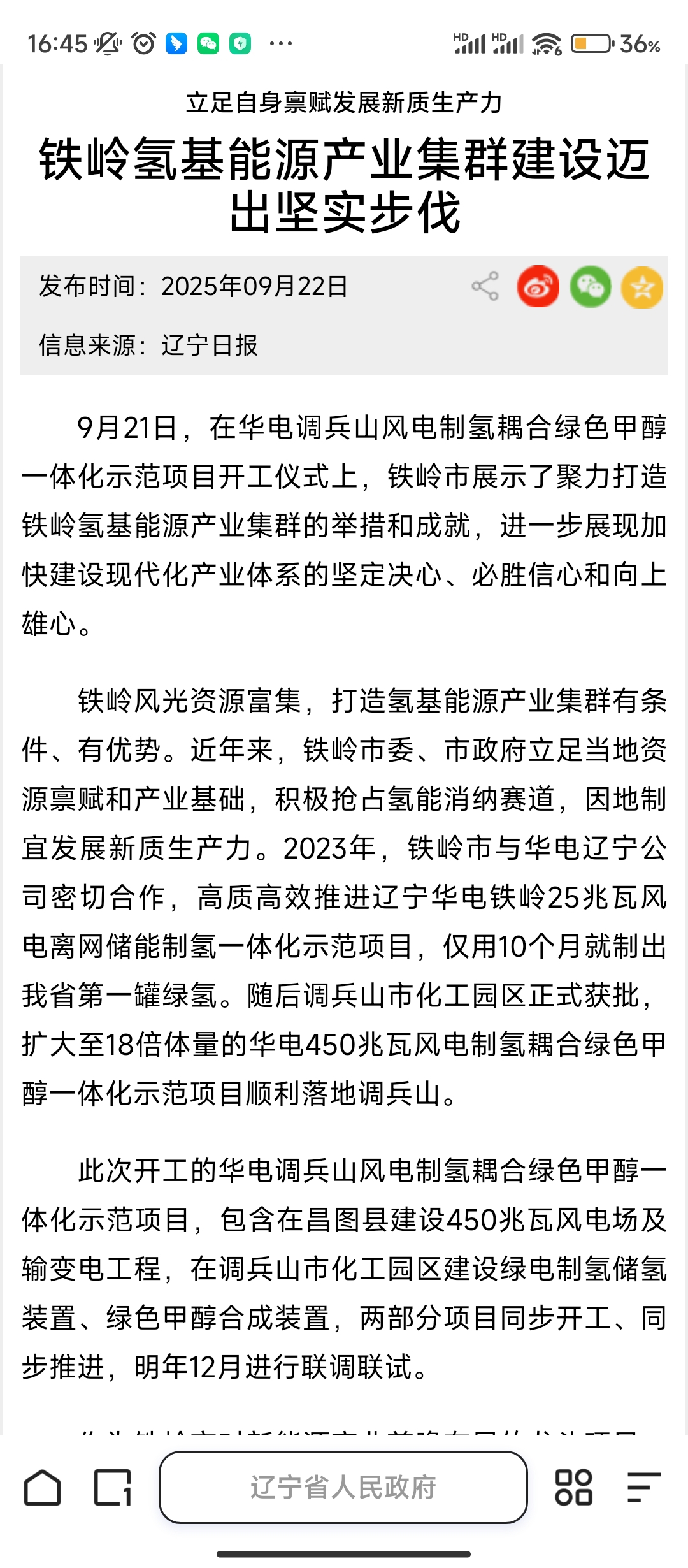 在氢能源领域布局了多个重点项目,主要包括辽宁铁岭的离网制氢项目和调兵山的风电制氢耦合绿色甲醇一体化项目。
