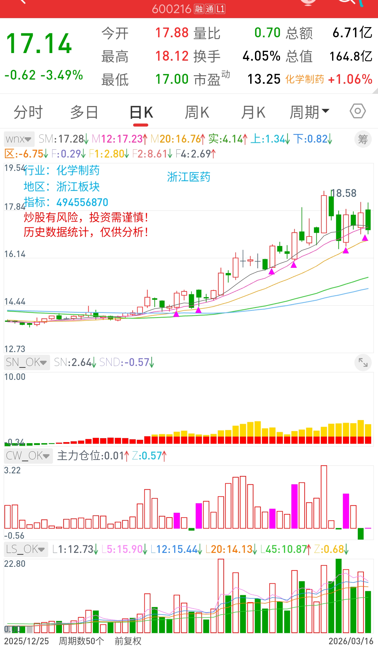 大前天的浙江医药,走势很弱,成交量开始萎缩,再不放量就完了。板块不行啊。