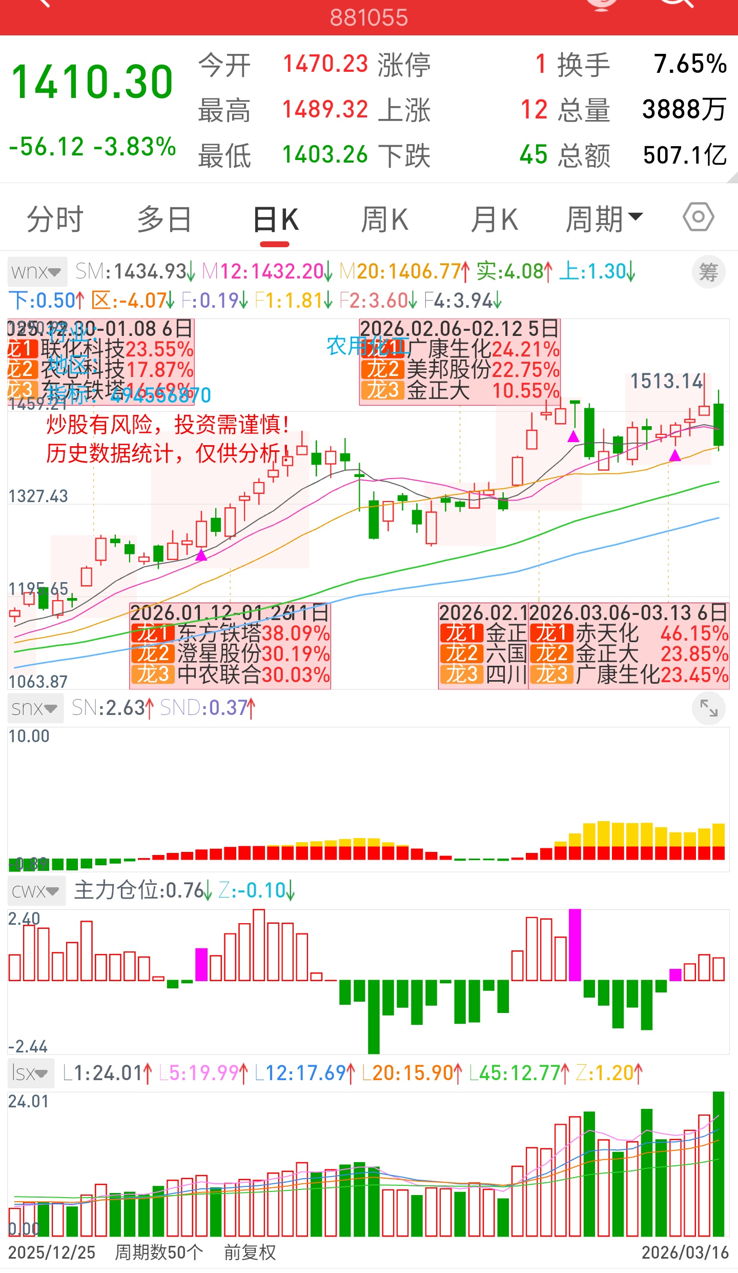 前天的泸天化,今天表现不给力,拉了涨停 但是最后还收了十字星。农用化工目前也是主线。