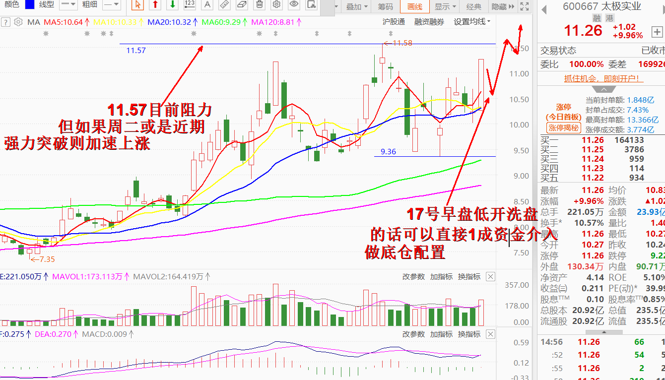 技术面:3 月 16 日涨停(11.26 元),创年内新高;MACD 零轴上金叉、红柱放大,均线多头排列,2026 年以来持续上行,近期主力资金,16号主力净流入5.65 亿(占成交额 23.63%)超大单净流入 4.85 亿,封单 1.85 亿,主力抢筹明确。逢低可以进,建议轻仓介入。