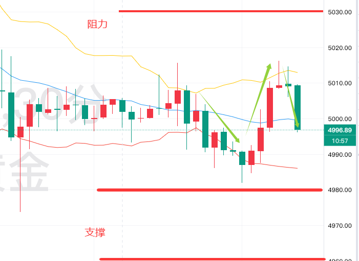黄金的支撑在4980美元,破了可能就要去4960;阻力先看5030-5050美元区域。
