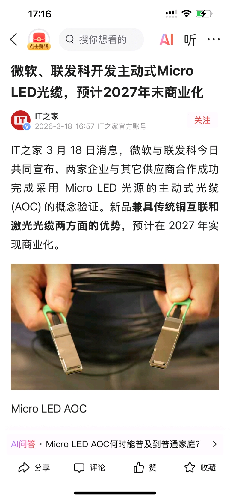 Micro LED 作为 CPO 光源的技术路线图,将极大加速该技术从“样品验证”走向“规模商用”,从而改变华灿光电的估值逻辑——从“周期性LED厂商”转向“AI算力硬件供应商家!
