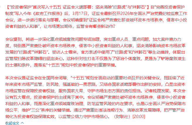 它传递的信号非常清晰——在“十五五”开局之年,资本市场不仅要“质升量稳”,更要“风清气正”。
