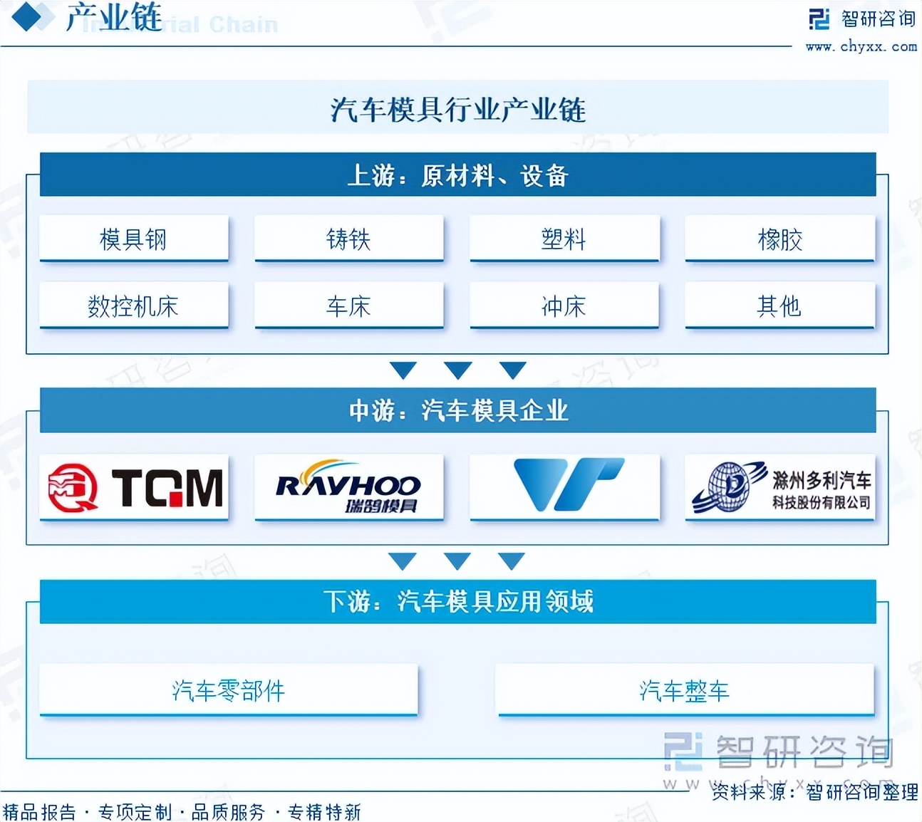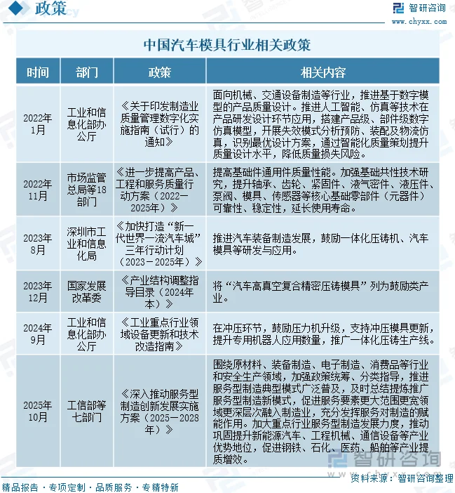 注:本文节选出自智研咨询发布的《研判2026!全球及中国汽车模具行业政策、产业链、市场规模、重点企业及发展前景:我国汽车模具行业稳步发展,带动市场规模增长至千亿元级别[图]》行业分析文章,如需获取行业文章全部内容,可进入智研咨询搜索查看。