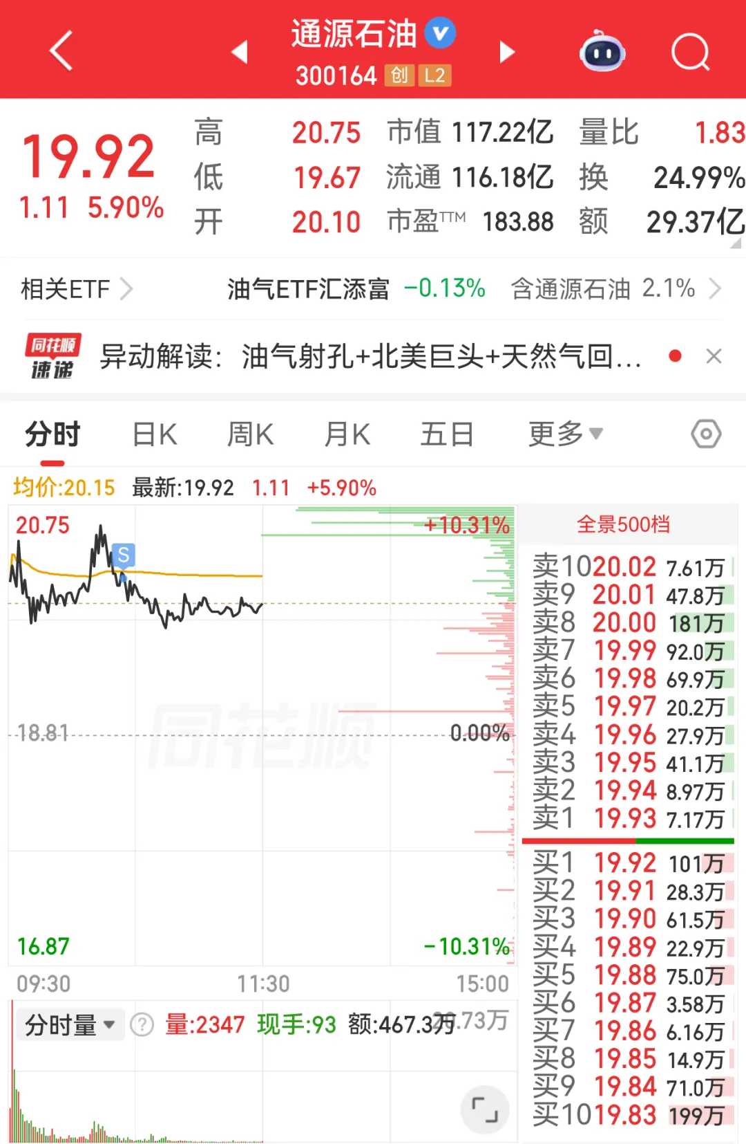 6、通源石油,昨天尾盘拿的一笔先手,今天顺利套利,昨晚冲突升级,但是今天石油竞价都没有顶一字板的,资金还是被石油搞怕了,盘中格局了一会,冲高9个多点没卖,回落二次破均线,7个点附近落袋再说;