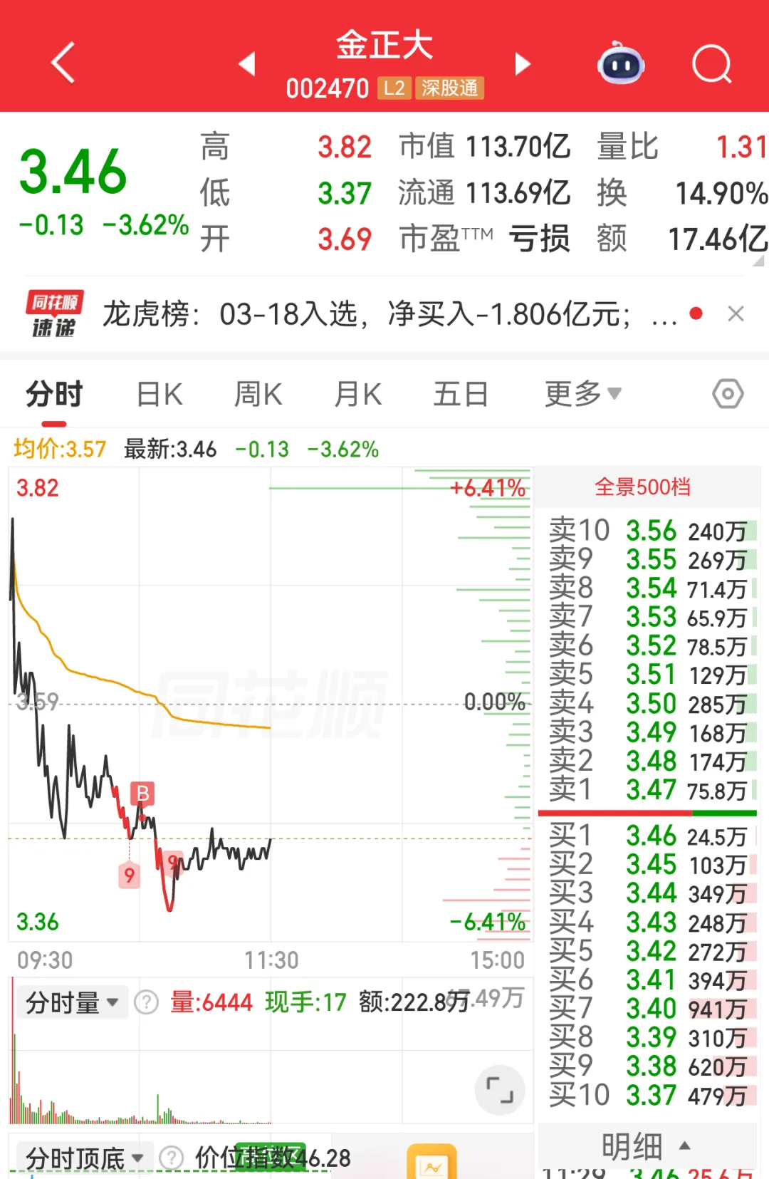 2、中泰股份,同样是看好煤炭,20cm就他一家,开盘小高开向上直接B了一笔,B在空中了,好在回落也不多;