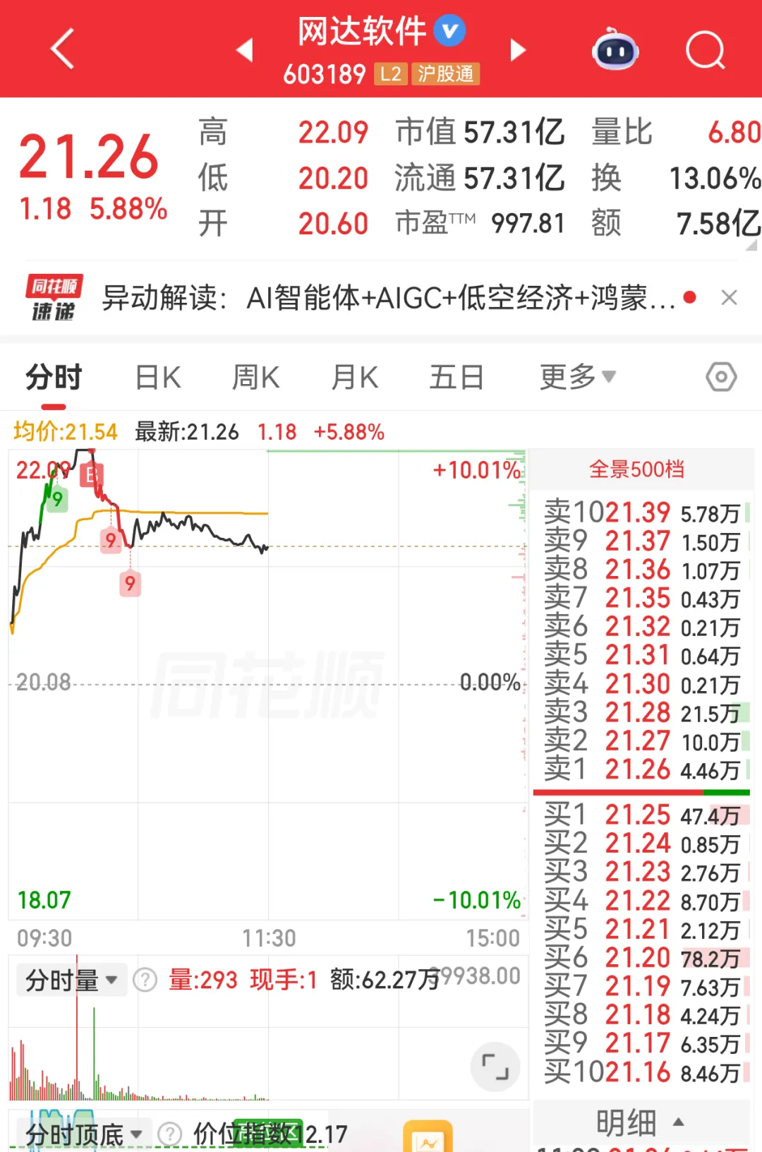 3、网达软件,1进2挺好的一个换手板,看好大模型这块,但是盘中港股两大龙头智谱和minimax大跳水,导致网达炸板;