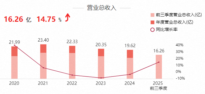 从季度表现看,2025年前三季度公司实现营业收入16.26亿元,同比增长14.75%;