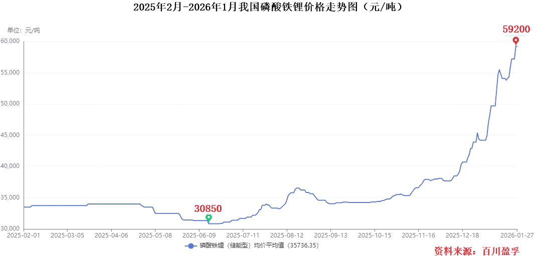到了2026年1月27日,每吨价格突破5.9万元,几乎实现翻倍;截至3月中旬,磷酸铁锂价格还能维持在5.62万元/吨。