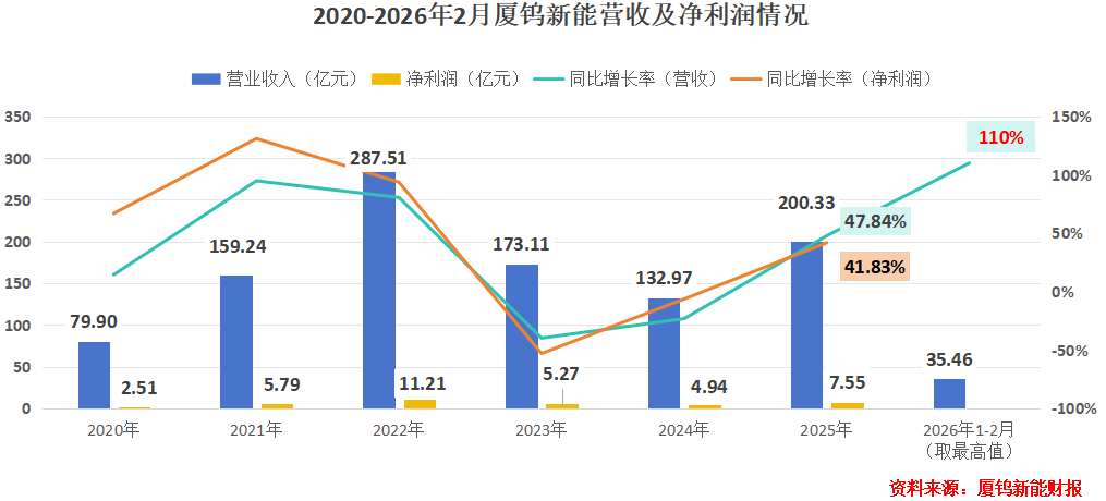 2026年3月5日,公司发布2026年1-2月营收公告。1-2月,公司营收预计最高可达35.46亿元,最高同比大增110%。