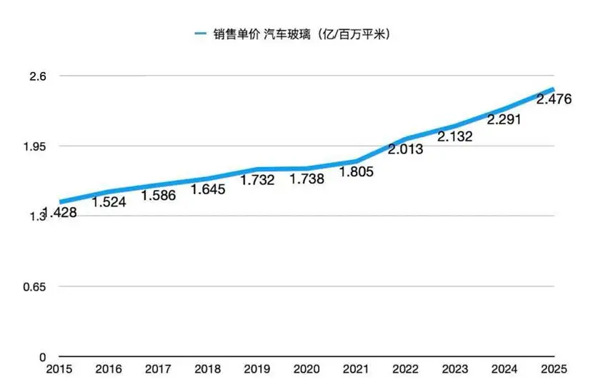 另一方面高附加值汽车玻璃产品占比不断提升,整体销售均价逐年上升,2025年达到了2.476亿/百万平,同比增长8.07%,相较于十年前,asp差不多飙升了一倍。