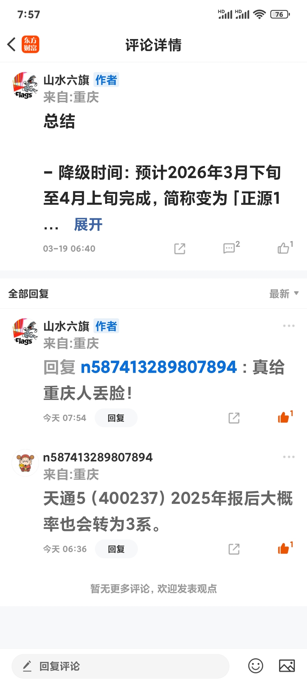 2. 天通5只要不是无法表示/否定意见,就稳坐5系!连基本规则都搞不清就唱空,确实给重庆人丢脸。