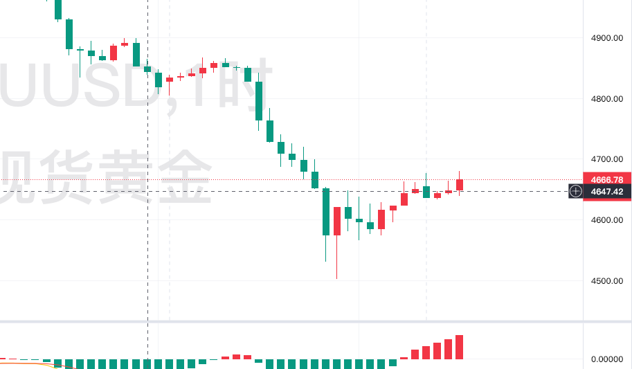 技术面来看,日线级别金价跌破多条关键均线,MACD指标死叉向下,空头趋势初步确立,不过KDJ指标已进入超卖区间,短期继续大幅下探空间有限。4小时周期维持低位震荡格局,4600是日内核心支撑位,一旦失守大概率再度试探前期低点;上方4700构成强压制,反弹难以轻易突破。
