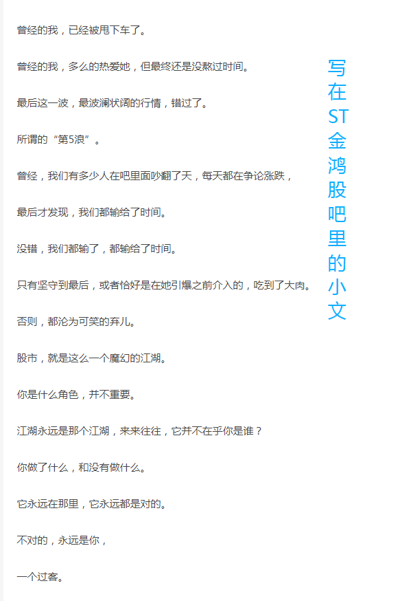 可以看之前做的ST金鸿,现在都翻了一倍多了。只不过,最后这一波主升浪没有吃到!