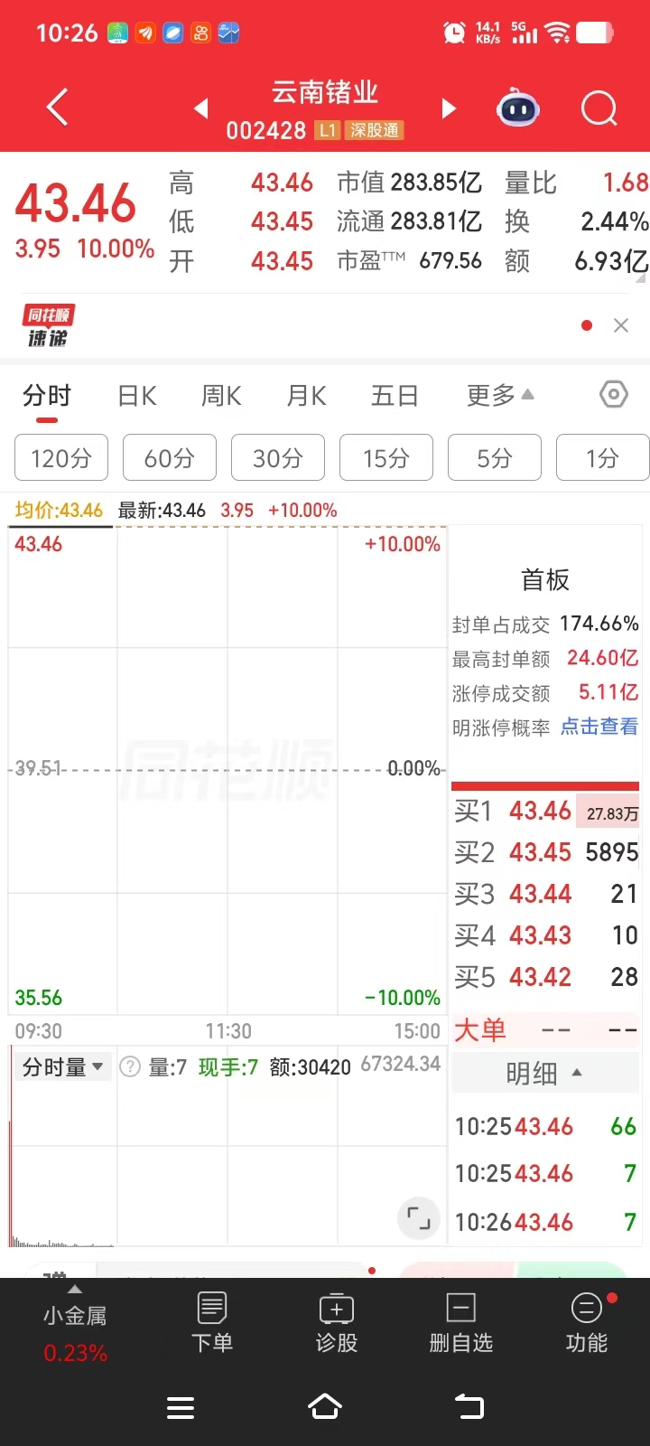 3.20盘中,云南诸业开盘涨停