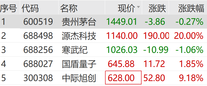 源杰科技走出20cm涨停,股价突破千元大关,成为A股历史上第8只千元股。截至发稿,源杰科技股价超越寒武纪,目前位居A股市场第二名。