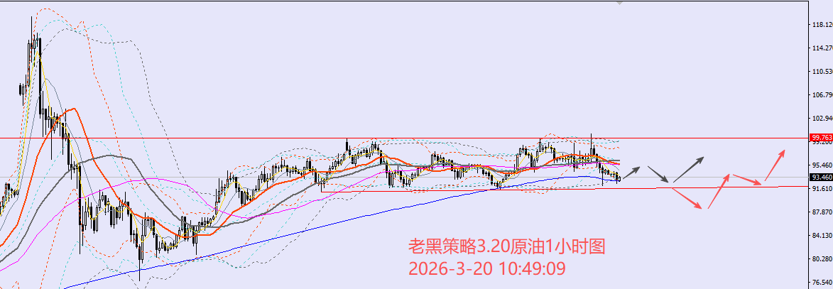 日内美油上方关注5日线95.0-5附近争夺,此位也是近期小时图区间中间带,所以若今日能重回其上则趋势依旧偏强,若一直在其下震荡,则要防范短线技术回修延续的风险。日内下方则还是先关注10日线92.5-0一带争夺测试,如果日内失守此区域,那么技术调整的空间可能会扩大,下方或可再看91、90附近回撤。