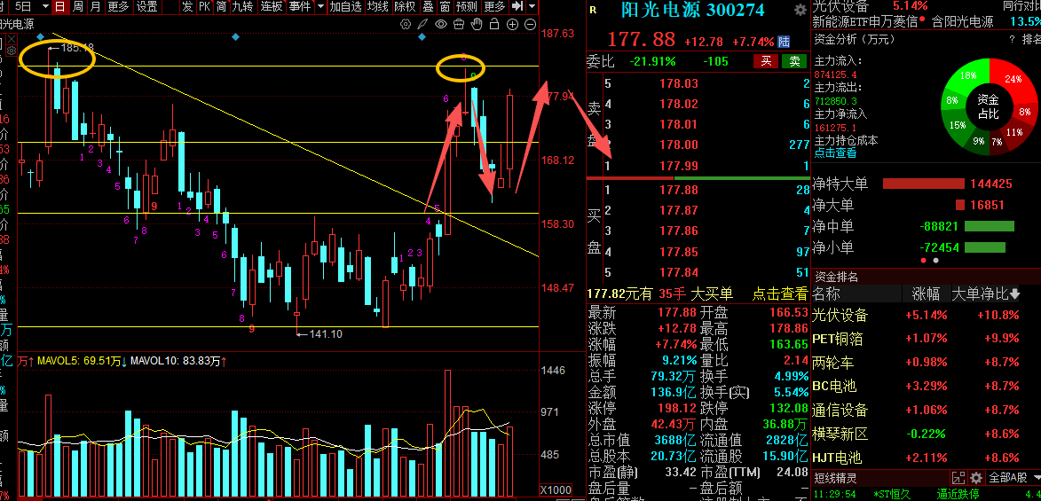 阳光电源:重点看178附近能不能站稳