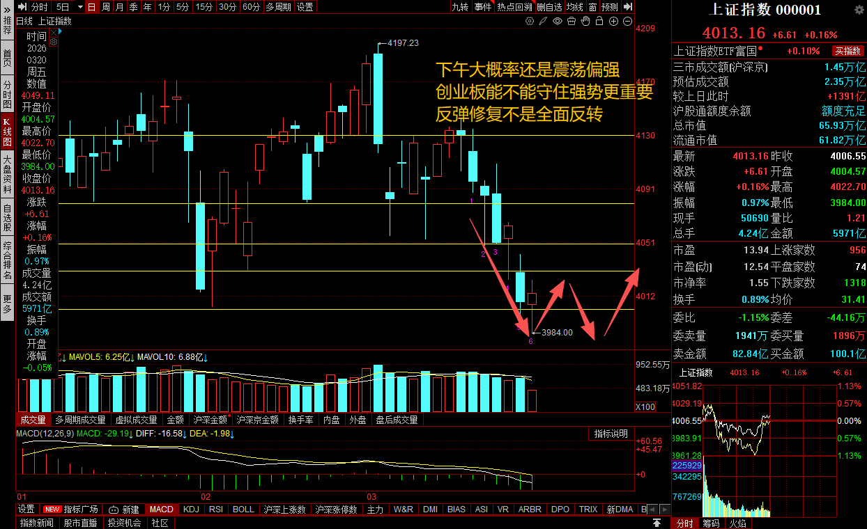 最后说一句最重要的。今天上午这盘,说明市场并没有彻底转坏,至少4000点这里是有承接的;而且我们一直盯的两个方向——新能源、科技硬件——也确实走出来了,这一点算是说中了。但午后还是那句话:别因为上午反弹就满血冲进去。 现在更适合做的是顺着主线看承接,顺着强弱做取舍,而不是看到谁拉得快就追谁。