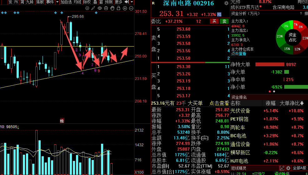 这票今天是持仓里最强的一个,上午放量反弹,说明资金认可度还在。之前我就说过,阳光电源不是纯情绪票,它属于新能源里的核心品种,板块一旦修复,它往往会先动。