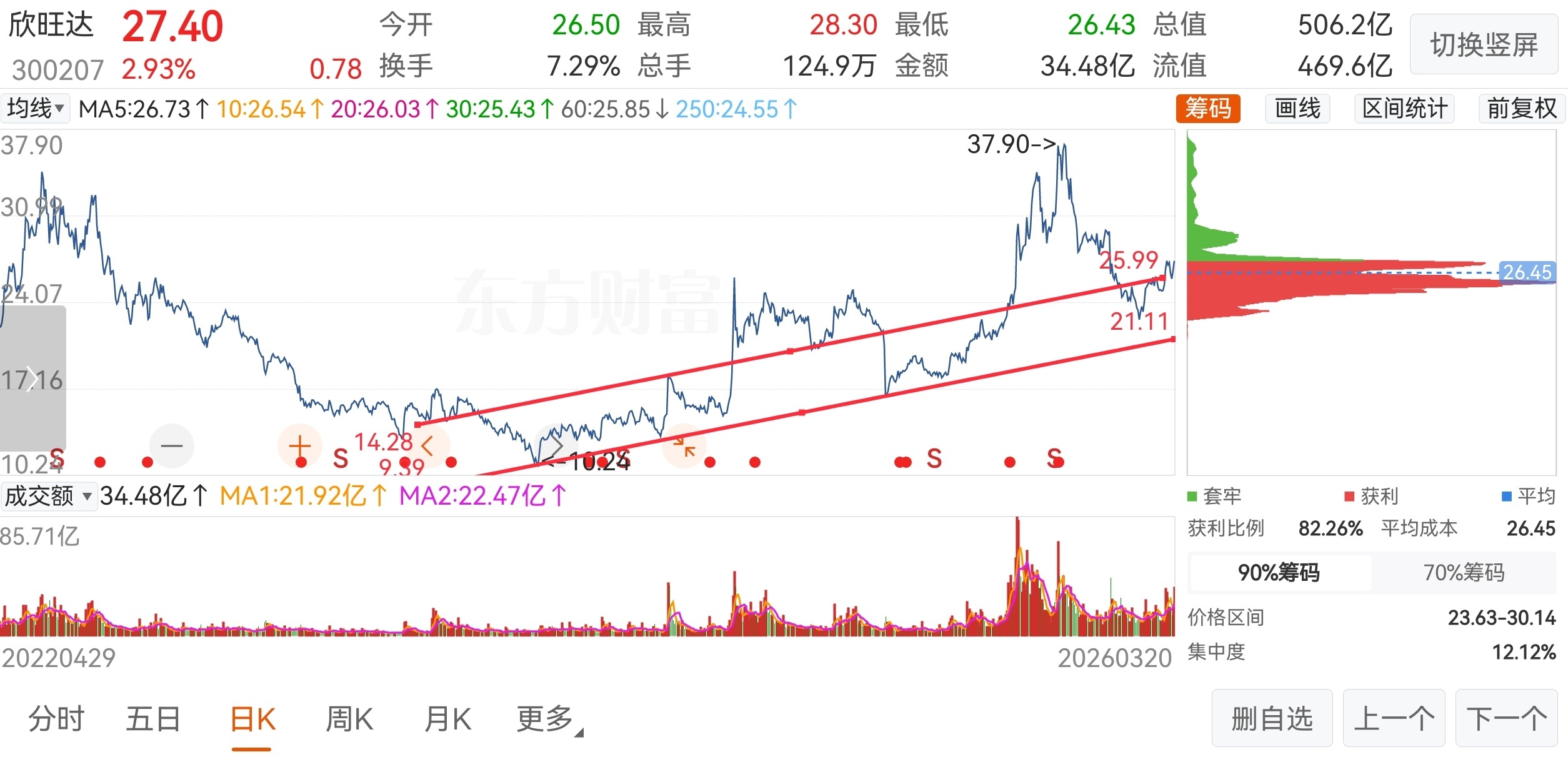 给大家追一个欣旺达自2024年2月以来的上升通道趋势线,有缘得之。