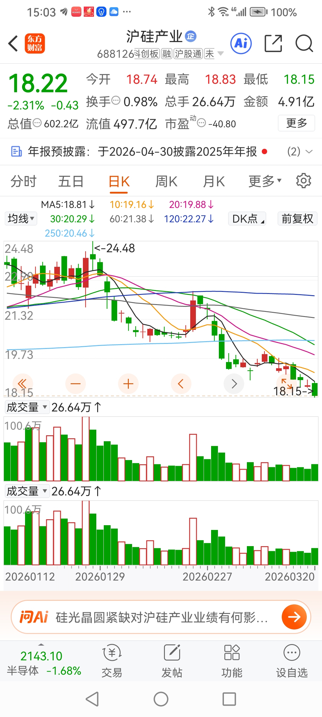 一周跌5天。