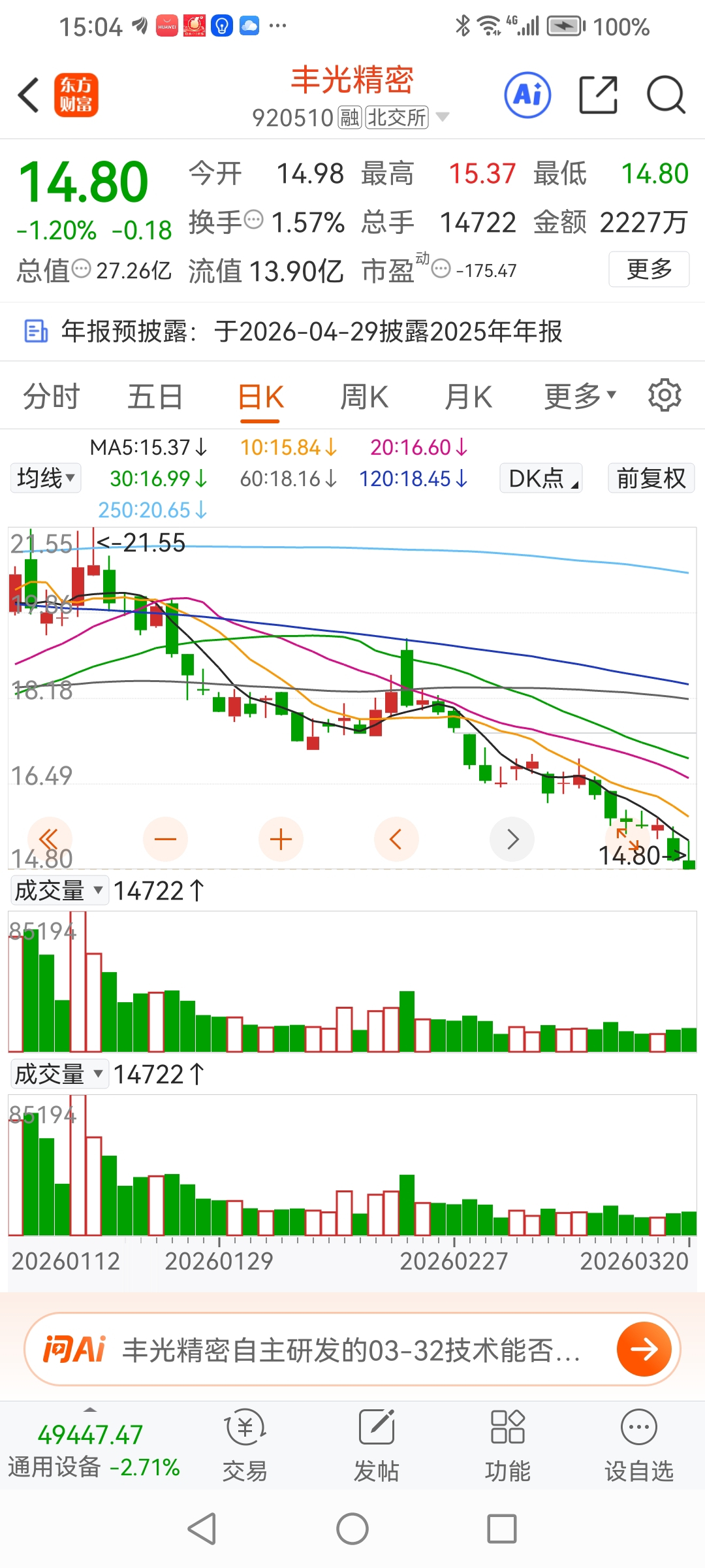 每天三个点,5个点的跌,