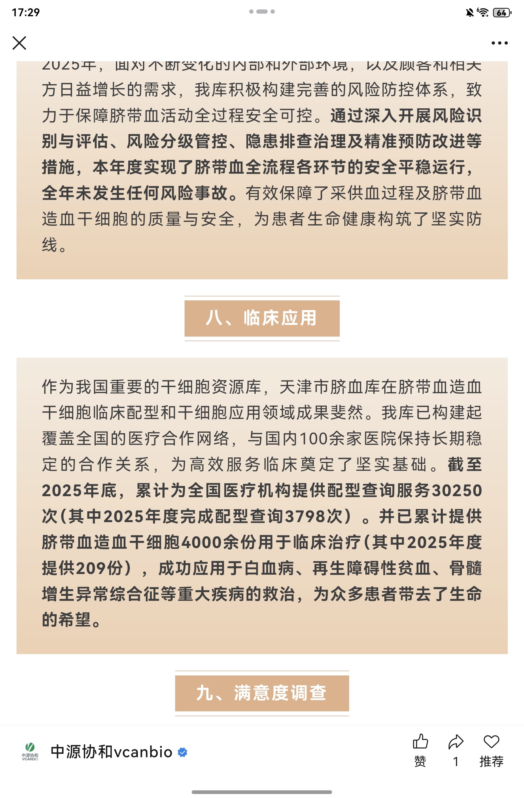 2025年“天津市脐带血造血干细胞库质量公告”正式发布!中源协和vcanbio2026年3月20日 17:25天津听全文