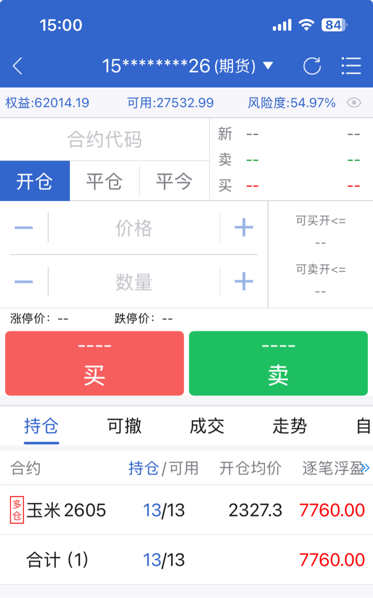 2026.3.20日记: 参考标的:玉米加权,1手为5%仓位。