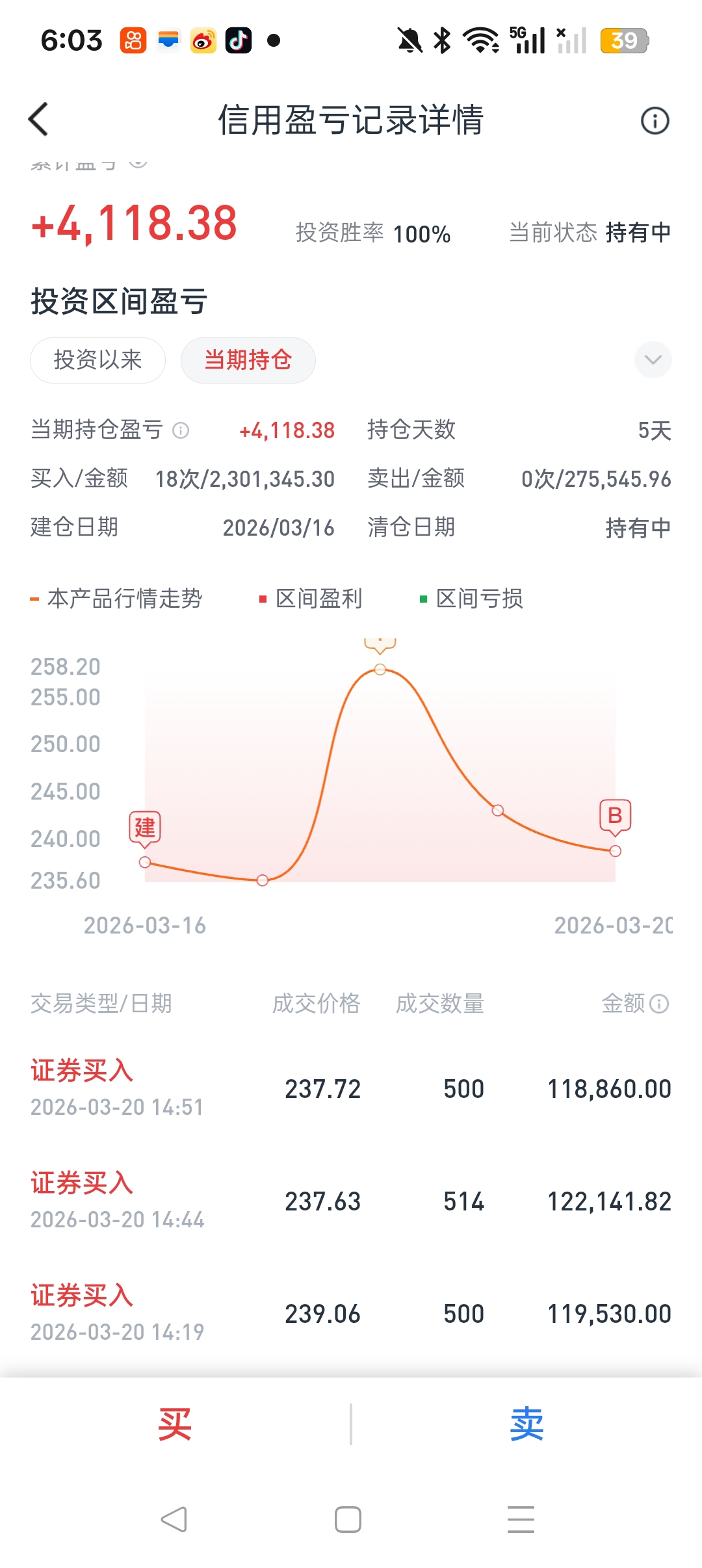 周一开仓佰维存储212元500股,周二238加仓1500股,周三集合竞价买入1500股,258元卖出1000股,周四244元加仓,周五238元继续加仓。