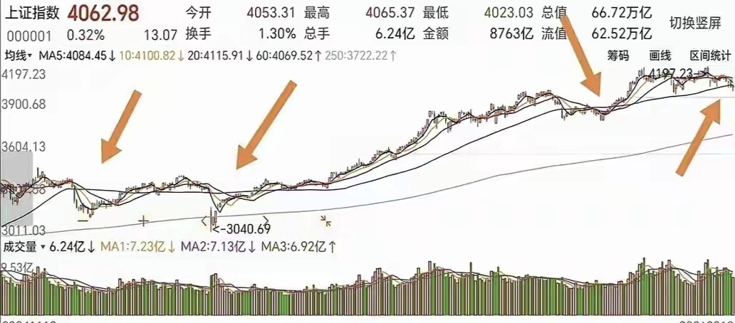 这是第四次了,朋友们,一模一样的剧本。每次大盘跌破60日线,底下就有不少人哀嚎遍野,感觉天要塌了。把去年的K线图翻出来,来回地看,你知道我看到了什么吗?规律。