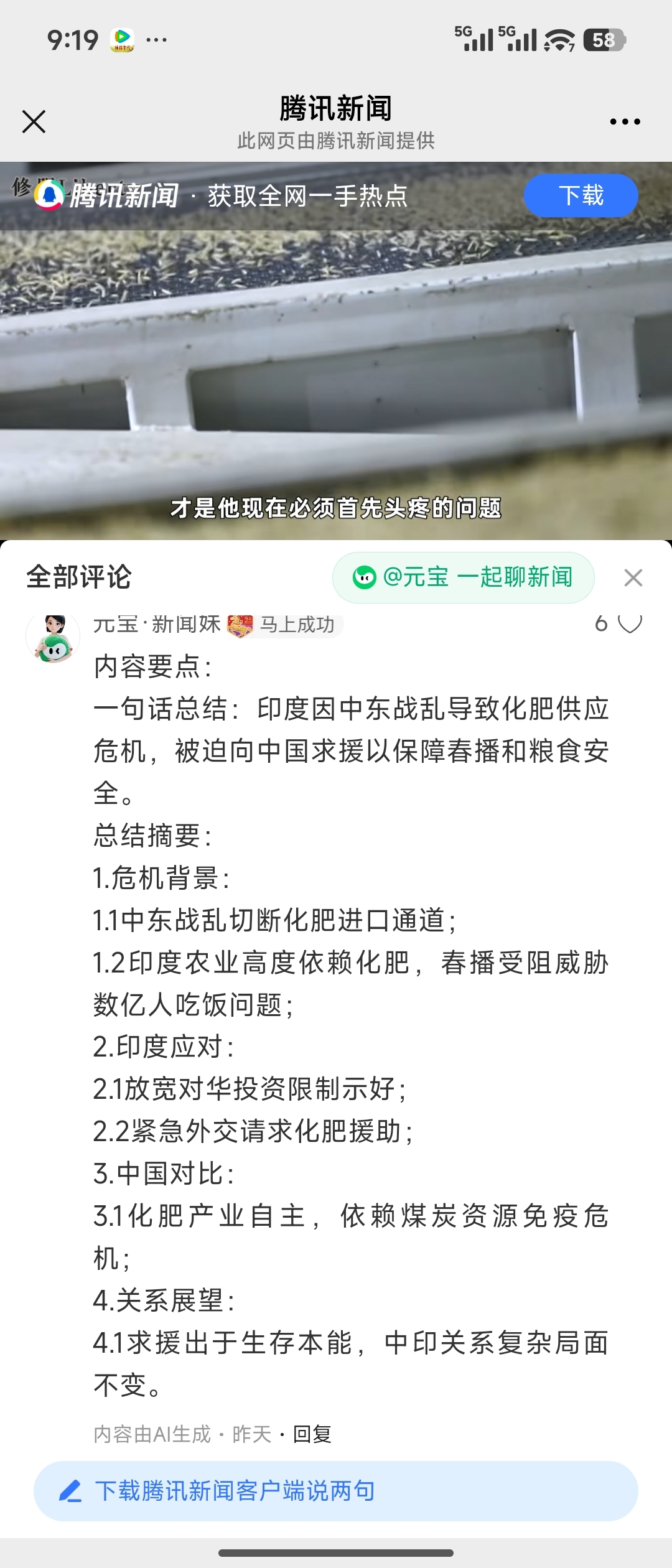 $四川美丰(SZ000731)$ 内容要点:一句话总结:印度因中东战乱导致化肥供应危机,被迫向中国求援以保障春播和粮食安全。总结摘要:1.危机背景:1.1中东战乱切断化肥进口通道;1.2印度农业高度依赖化肥,春播受阻威胁数亿人吃饭问题;2.印度应对:2.1放宽对华投资限制示好;2.2紧急外交请求化肥援助;3.中国对比:3.1化肥产业自主,依赖煤炭资源免疫危机;4.关系展望:4.1求援出于生存本能,中印关系复杂
