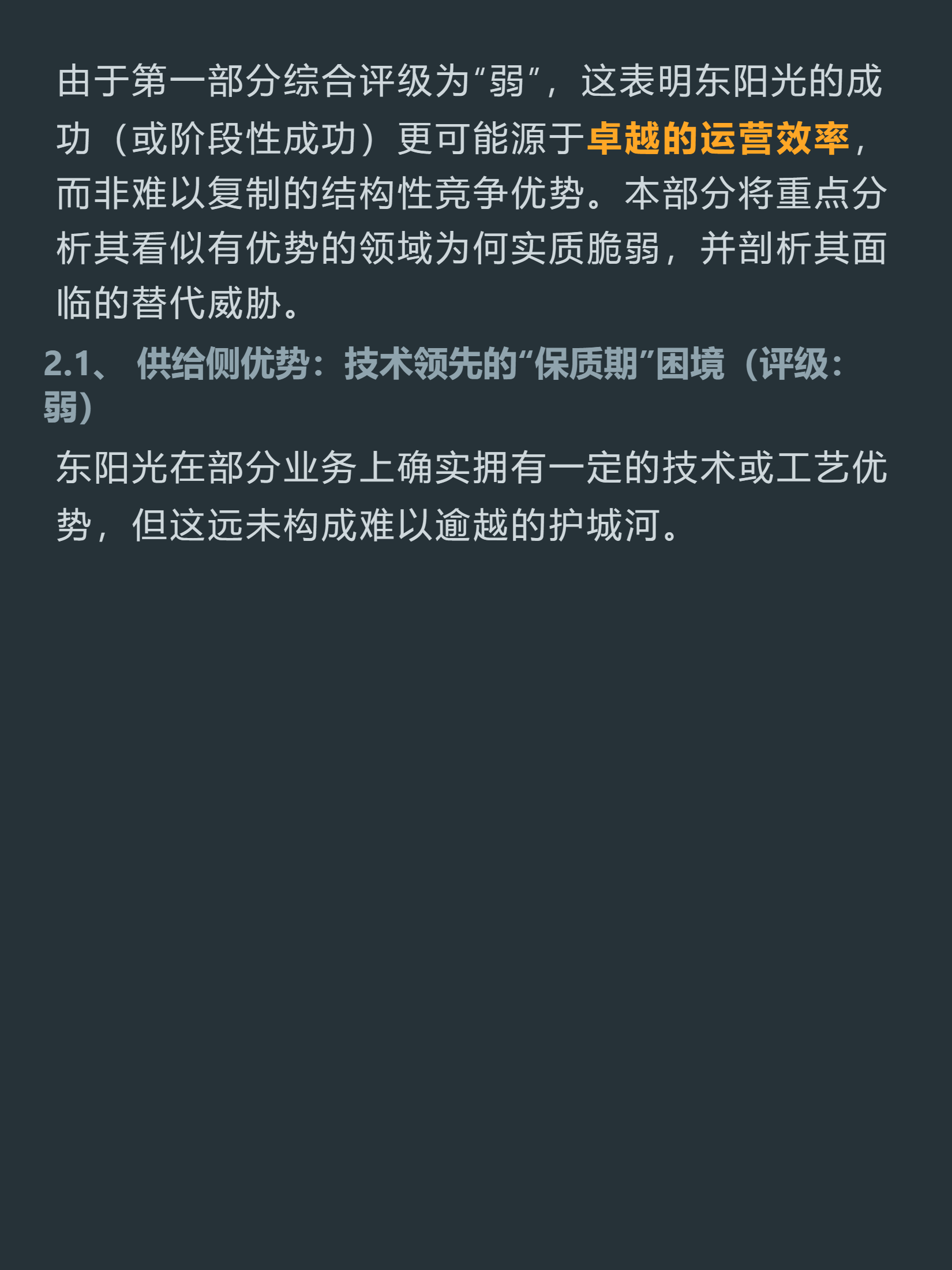 以上是公司护城河是否存在、竞争优势来源于可持续性分析。完整报告里还有它的主要竞争对手对比,竞争优势排名,以及护城河总结、优势、劣势、归因以及对投资者的启示。还有公司全面深度分析报告,判断是否好公司。打开【口袋分析师】小程序即可获得。