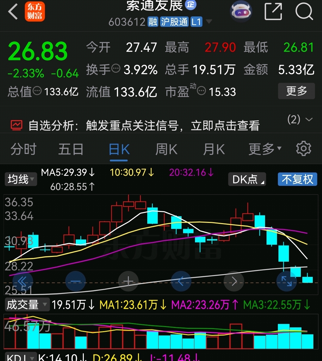 索通发展下周杀跌26.02元左右持续能够支撑且站稳,看看28.6元一个涨停板高度…