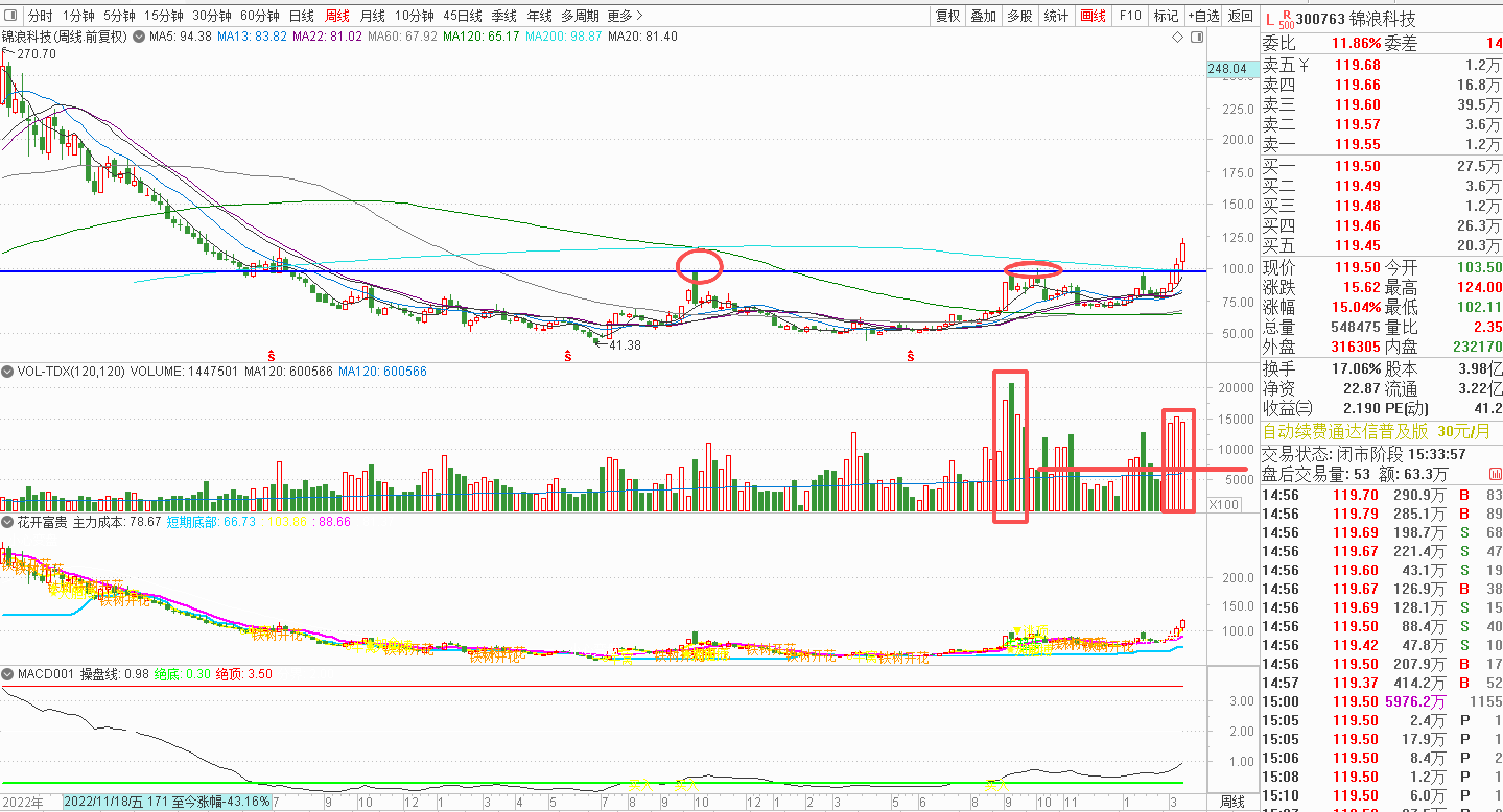 跟踪思路:周五光伏板块逆势走强,锦浪科技盘中大幅拉升,资金抢筹迹象明显,属于赛道资金重点布局的核心标的,走势强于板块多数个股,短期上升趋势初步形成。结合周末热点来看,全球光伏出海逻辑持续发酵,公司作为海外占比超高的龙头,短期有望迎来资金共振拉升。