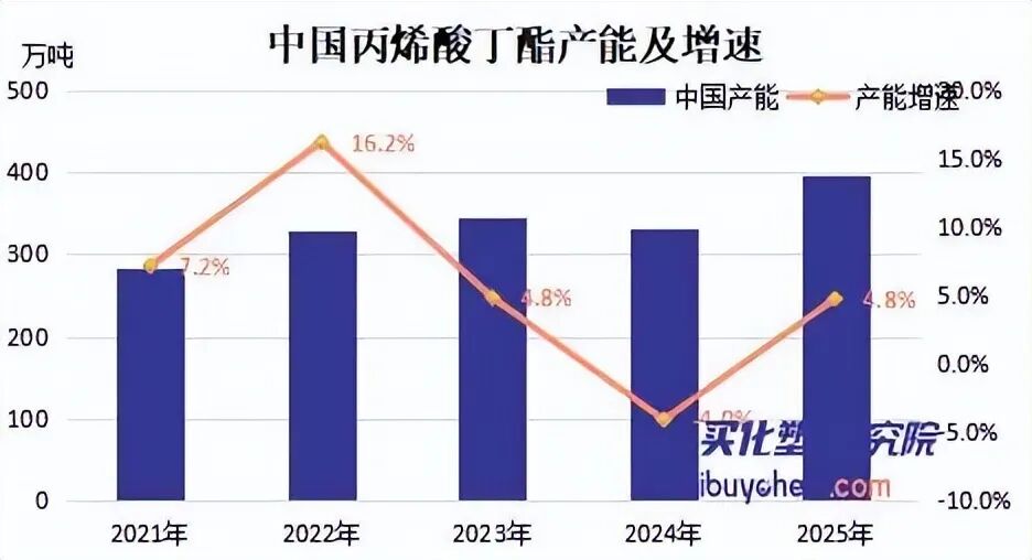 从行业整体发展态势来看,当前国内丙烯酸丁酯行业正处于产能集中释放的关键时期,市场格局正在加速重构。据买化塑研究院统计数据显示,2025年国内丙烯酸丁酯产能已接近400万吨/年,市场供应能力大幅提升,进口依存度持续下降。展望“十五五”期间,国内丙烯酸酯行业仍有近150万吨/年的新增产能规划,2026至2030年将迎来新一轮产能投放高峰,行业市场竞争将进入全面升级阶段。