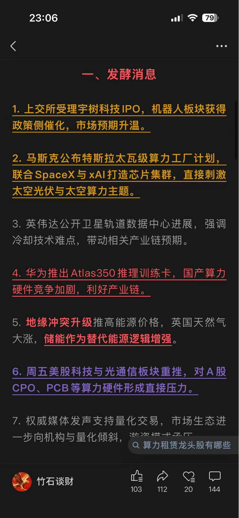 6. 周五美股科技与光通信板块重挫,对A股CPO、PCB等算力硬件形成直接压力。