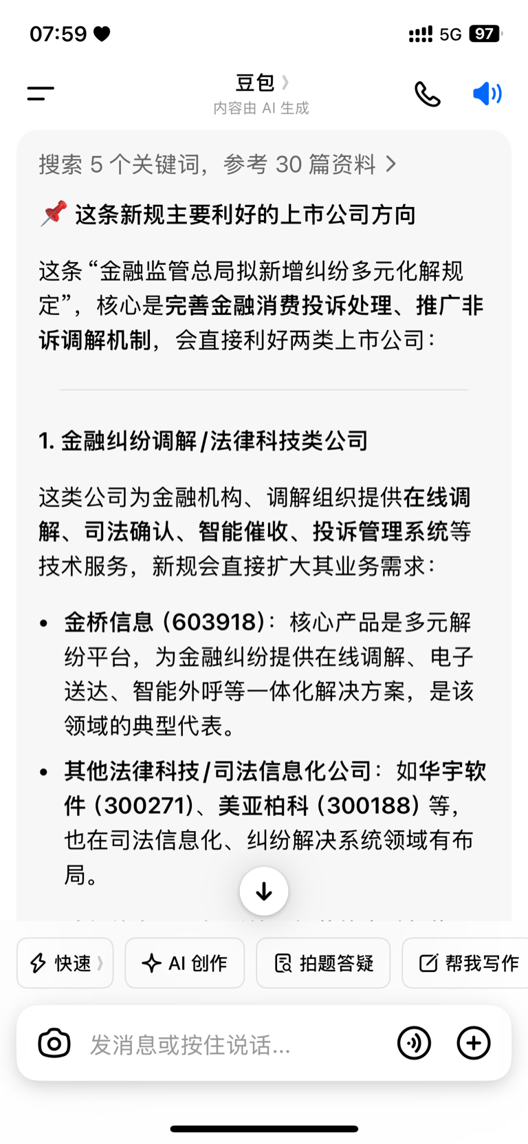 • 金桥信息(603918):核心产品是多元解纷平台,为金融纠纷提供在线调解、电子送达、智能外呼等一体化解决方案,是该领域的典型代表。