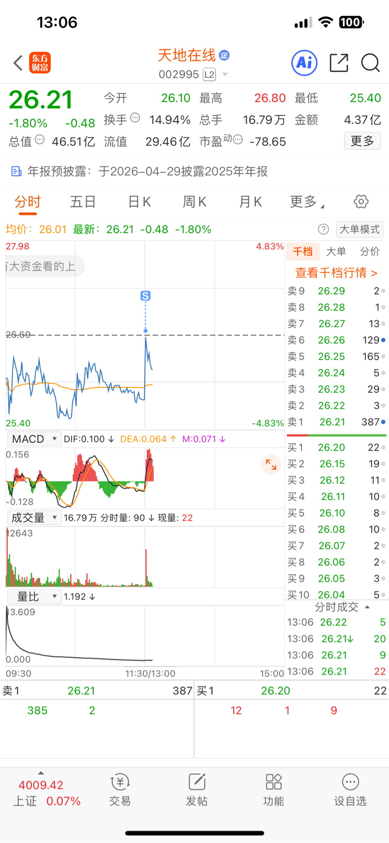$天地在线(SZ002995)$ 周六日不是有二极管说我卖飞吗?上周五午盘李第一次直播没开礼物,流量很少,人数也上不去,然后关了开第二次送礼物的直播,人数才勉强上10万,快下播的时候人数也掉到6万,人数下降非常快,也就30分钟。1点开盘的时候,小单拉升,量很小,爬升也很慢,明显诱多,我等一出现卖单就直接清了,太不及预期了!但凡见过年前的直播流量就知道现在的流量下降了8-10倍,我见过太多一波流的顶级流量了,比如听泉之前有多火,现在直播流量也上不去,之前还搞卖货,卖货直接搞倒闭了!听泉有些二极管可能不认识,无人扶我青云志,我自踏雪至山巅就是他说的。这股我以后也不会买了,就是跌到10块5块也不会,这股本身就是一拉几,不是去年年底李带起来热度根本涨不了,而李这流量也会慢慢淡去