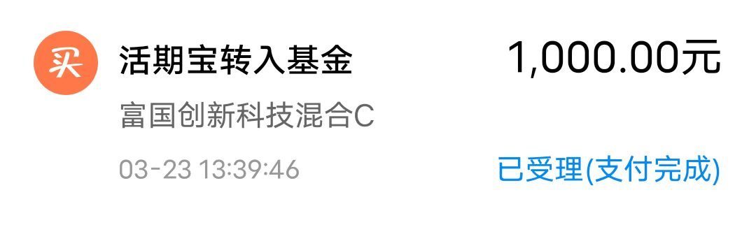 今日我加仓富国创新科技混合C(011120)1000元,受到外围地缘政治利空影响,近期全球股市动荡,A股也同样出现了不小的砸盘调整,我的持仓都受到了不小的影响。不过我发现我持仓的创新科技基金回撤很小,目前整体还维持着上行走势,我现在的收益还有近20%,相比其他亏损的基金真的表现好很多了,今天市场再次普跌,我趁着回调做下补仓。$富国创新科技混合C(OTCFUND|011120)$