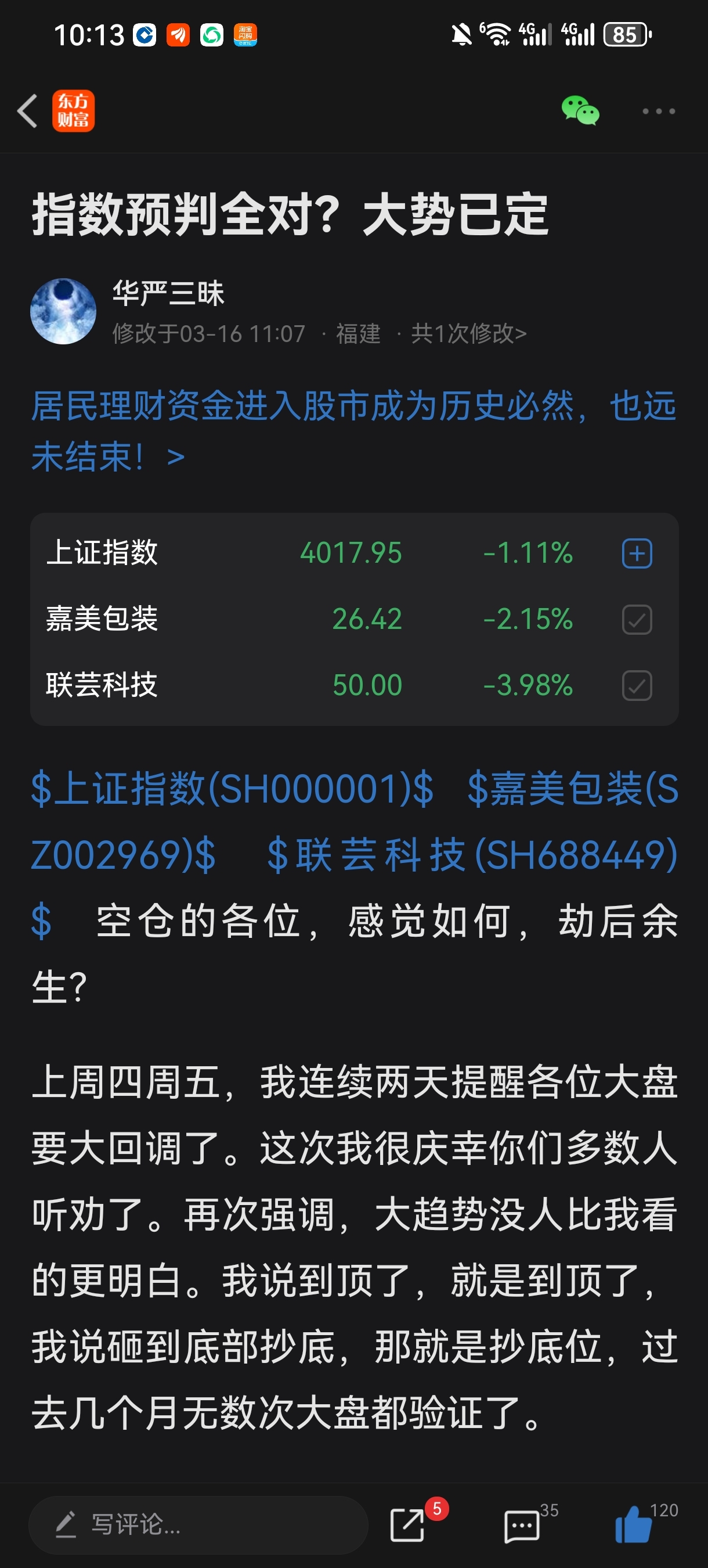 但凡我没说买的,不要自作主张去抄底,这种行情你只会抄在半山腰,我没说卖的就是没卖,比如联芸,但是不妨碍你们卖。我的纪律性是很强的,说了拿一个月,那就死拿一个月,亏了我也无所谓。