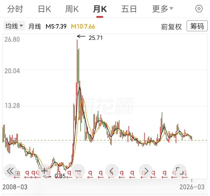 趋势形态:长期处于宽幅震荡下行态势,历经多轮调整后,重心逐步下移,处于历史低位区间。
