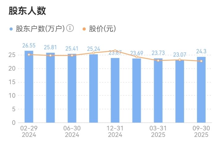 1.股东人数波动较大:从2025年6月的21.75万户增加到9月的24.30万户,随后又减少到12月的22.35万户,显示筹码在不同投资者之间频繁换手