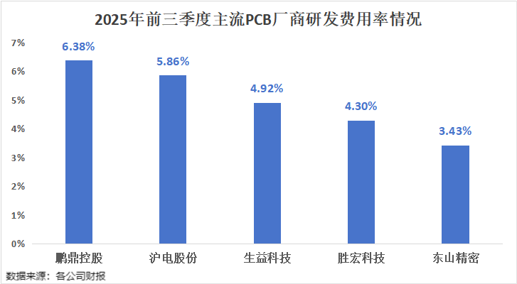 用研发情况来看,2025年前三季度,鹏鼎控股的研发费用为17.13亿元,研发费用率为6.38%,在行业内处于第一梯队。