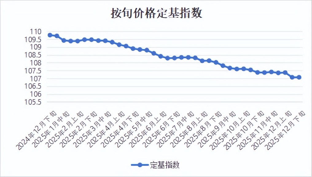 从行业层面来看,2024年12月下旬至2025年12月下旬,全国白酒批发价格总指数-按旬价格定基指数从109.76下降至107.07,整体呈下降趋势,累计跌幅为2.45%。